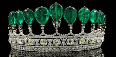 This tiara was once in the collection of Princess Katharina Henckel von Donnersmarck and features emeralds that possibly/maybe/might have once belonged to Empress Eugénie of France, wife of Napoleon III. Sotheby's sold it for an astonishing $12.76 million. Take that, recession!