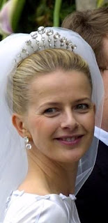 The tiara's large diamonds are borrowed from the Dutch Sapphire Tiara. I find it somewhat, erm, pokey in a photograph, but in movement it works. The huge diamonds capture every last possible bit of light. The tiara itself has a rather two-dimensional effect; it almost seems like a fairytale illustration of a tiara come to life to me.